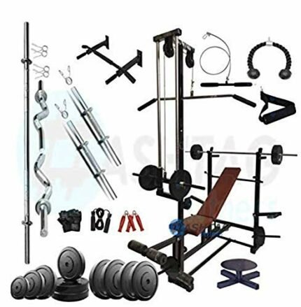 - 20 In 1 Bench (Features: Incline, Decline, Flat, Leg Curl And Leg Extension , Chest Press/Butterfly , Lat Pull Down , Ground Pulley , And Dips , Arm Curl ).