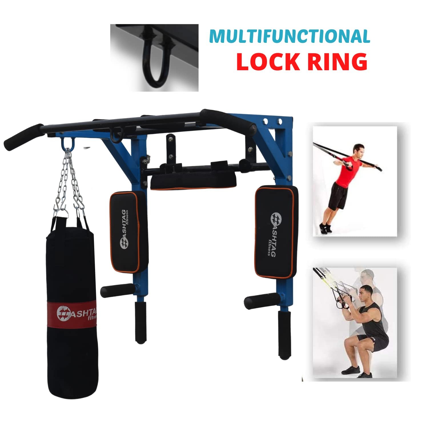 Hashtag Fitness 3in1 multi station pull up bar for home,dip station,dip stand with punching bag and hanging chain boxing training kit gym equipment set for home